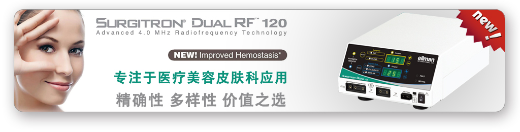 全新SURGITRON DUAL RF 120IEC,擁有更美的外觀,更強的性能,優越的射頻止血功能,作為同時擁有4.0 Mhz和1.7Mhz的雙射頻產品,能應用于更多的科室手術。