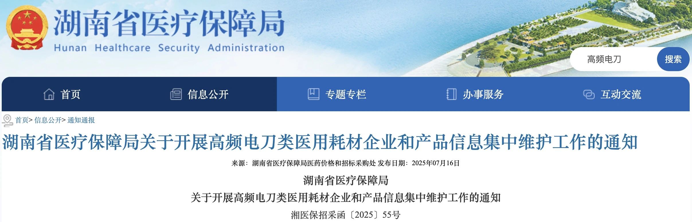 根據(jù)《通知》,湖南省將牽頭開展高頻電刀類醫(yī)用耗材省際聯(lián)盟集采,產(chǎn)品范圍包括高頻電刀類和中性電極類相關(guān)耗材,企業(yè)和產(chǎn)品信息維護(hù)時(shí)間為2025年7月17日至2025年7月24日。