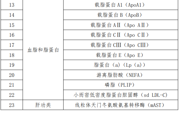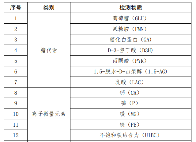 其中,初步遴選出32個品種并進行公示,包括糖代謝、離子微量元素、血脂和脂蛋白、肝功類、胰腺類、腎功類等6個類別。