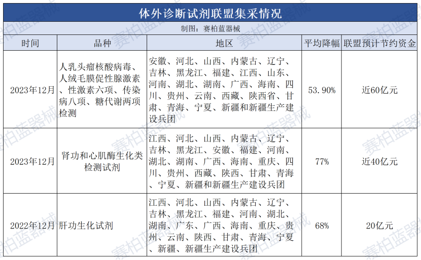 此前,北京、上海、天津、江蘇、浙江等地未加入聯(lián)盟集采的隊伍,而在全國聯(lián)采之下,上述區(qū)域市場也將實現降價。按照以往的集采經驗,除試劑價格大幅下降外,集采也將促使體外診斷試劑市場向頭部企業(yè)集中。
