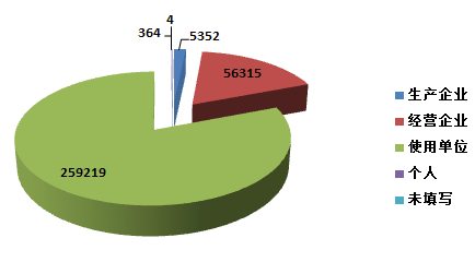 截止2015年12月31日,在全國醫療器械不良事件監測系統中,注冊基層用戶(包括醫療器械生產企業、經營企業和使用單位)共198, 536家。其中,醫療器械生產企業10,344家,占注冊基層用戶總數的5.2%;經營企業91,322家,占注冊基層用戶的46.0%;使用單位96,870家,占注冊基層用戶的48.8%(圖1-4)。