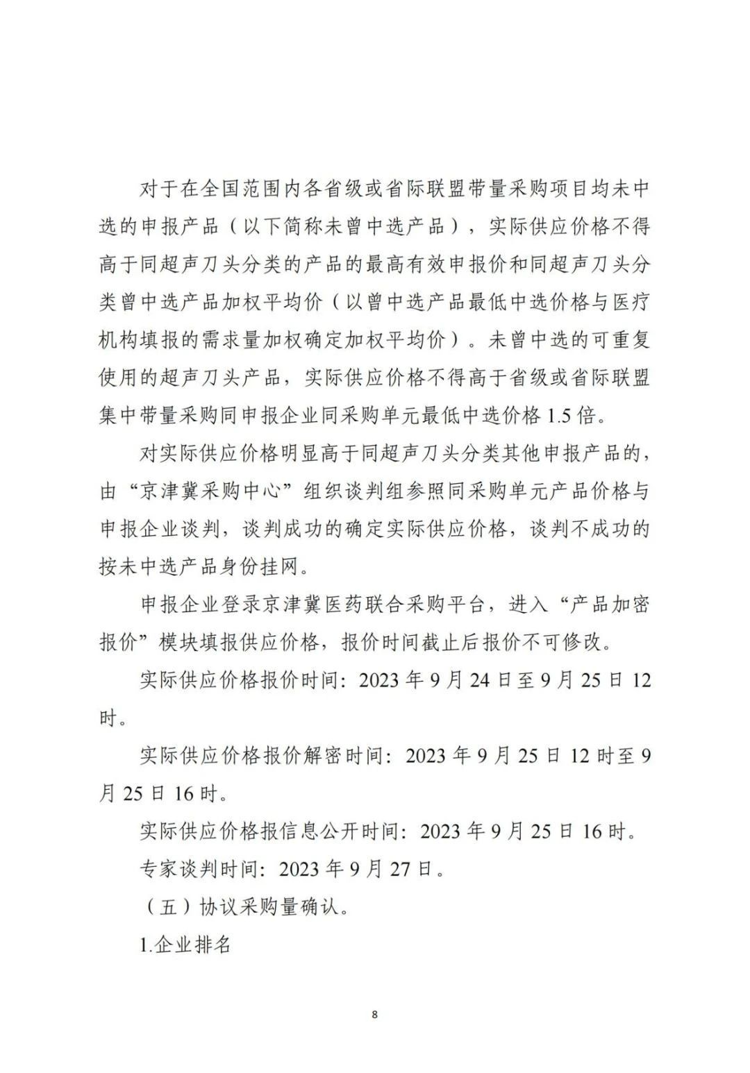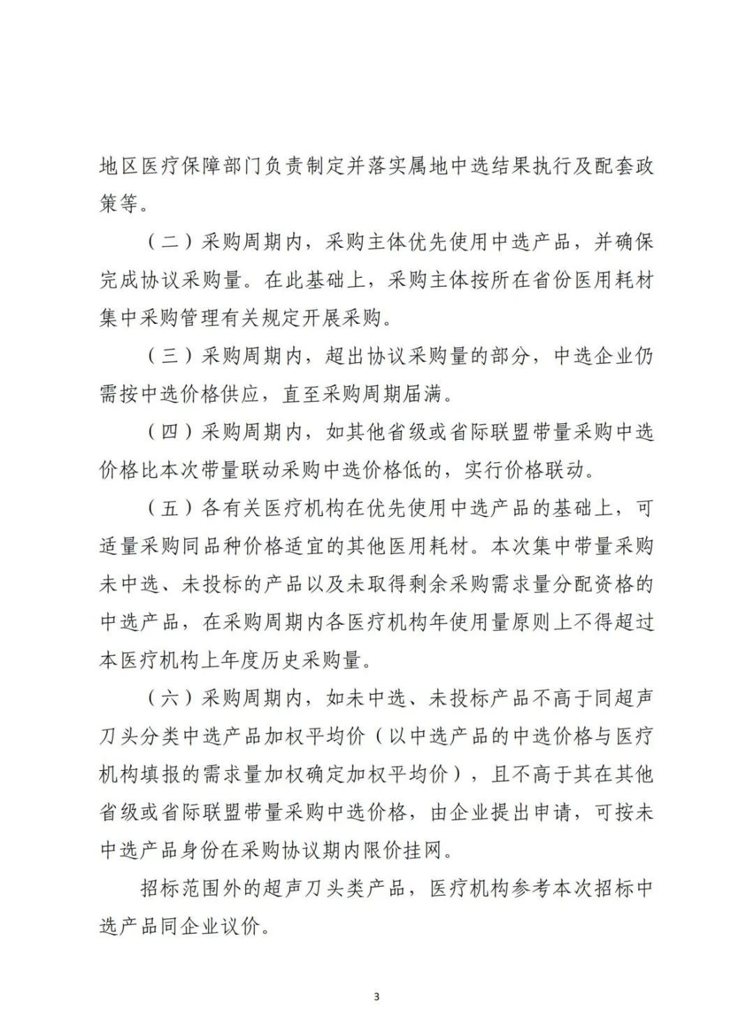 9月12日,廣東發布《超聲刀頭聯盟地區集中帶量采購協議期滿后接續采購文件(征求意見稿)》,其中也提到,續簽價格須聯動按上年簽約期滿前新公布的本企業同中選產品在全國省級(含省級聯盟)集中帶量采購最低的中選價格,且不高于本次集中帶量采購中選價格;若不接受價格聯動的,在后續采購期內按其承諾放棄對應產品的中選資格。