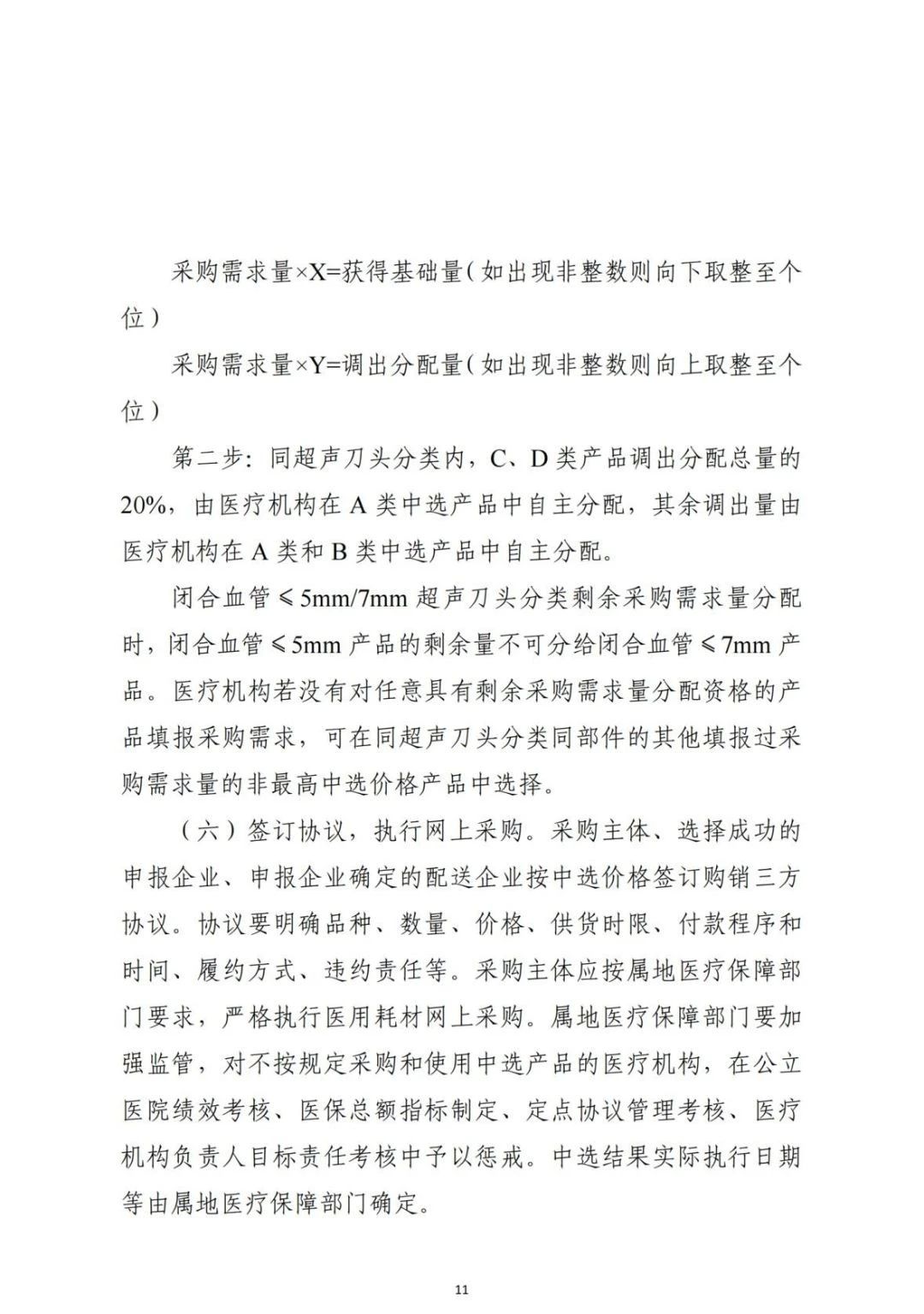 同超聲刀頭分類內,C、D類產品調出分配總量的20%,由醫療機構在A類中選產品中自主分配,其余調出量由醫療機構在 A 類和 B 類中選產品中自主分配。