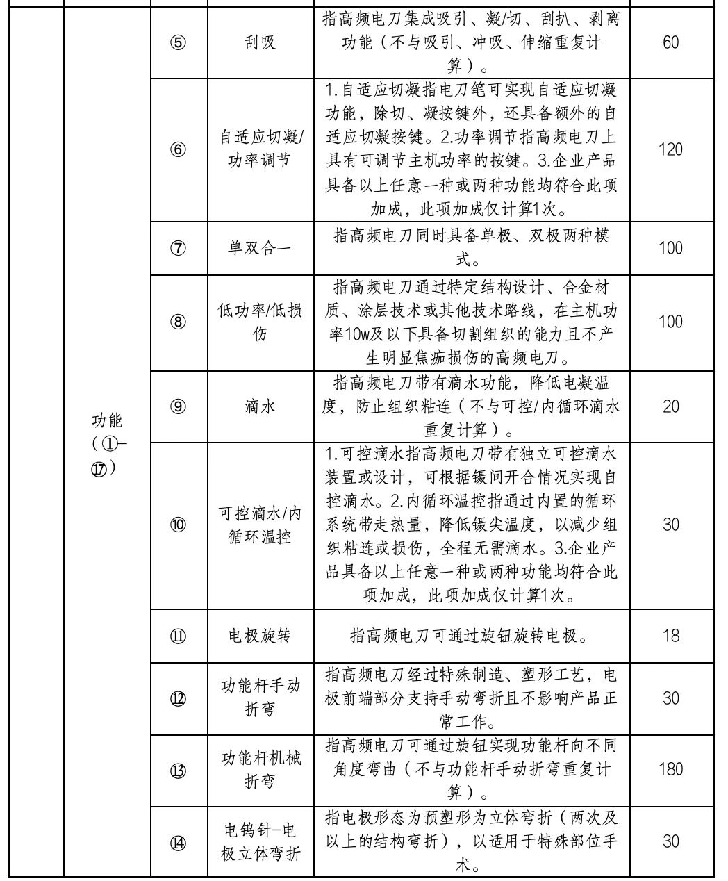 值得注意的是,本輪集采設(shè)置中選產(chǎn)品加成規(guī)則,伸縮、沖吸、照明、電極旋轉(zhuǎn)、涂層材料等均被列入加成項,且明確了具體加成金額。