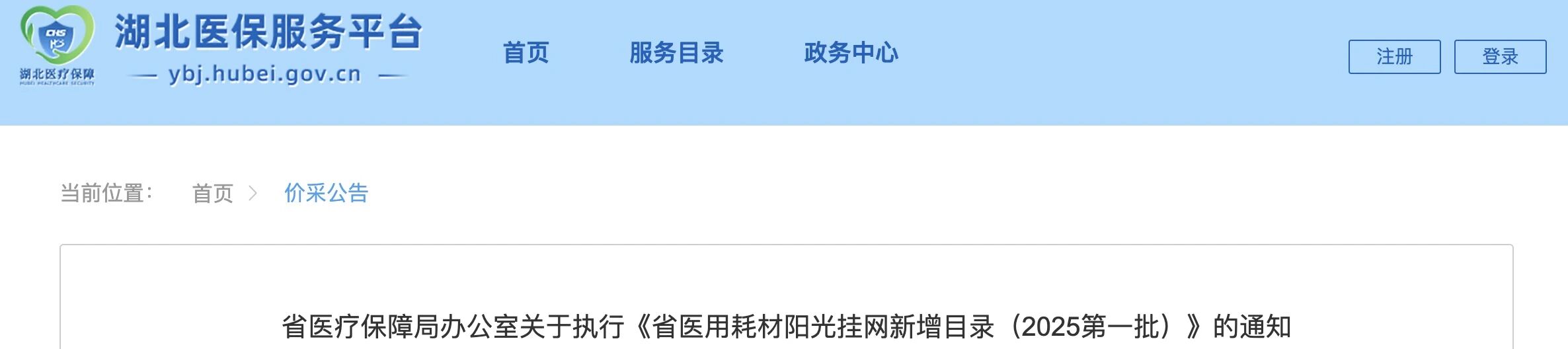 今日(12月19日),湖北醫保服務平臺發布關于執行《省醫用耗材陽光掛網新增目錄(2025第一批)》(簡稱《新增目錄》)的通知。