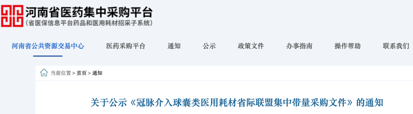 1月27日,河南醫藥集中采購平臺發布《冠脈介入球囊類醫用耗材省際聯盟集中帶量采購文件(公示稿)》,公示期為2026年1月27日至1月31日17時。