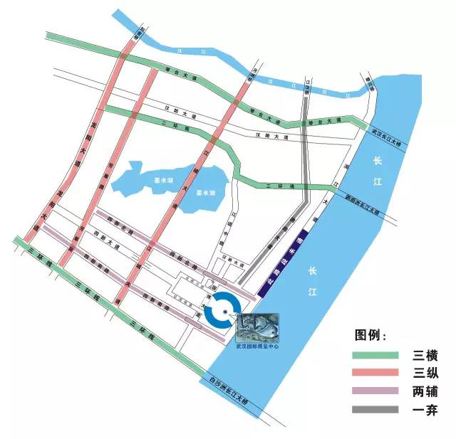 通過-月湖橋-江城大道-四新北路-江堤中路-國際博覽中心交通港