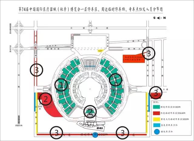 2、展館南門臨時停車區(qū)、會議中心停車區(qū);