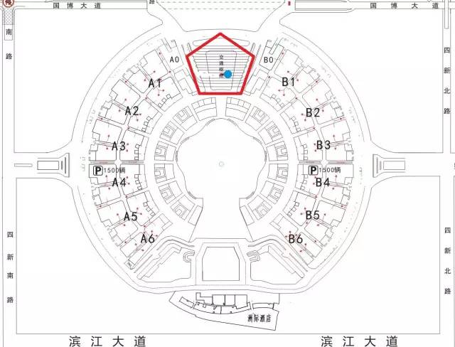 1、展館一層A0-A6、B0-B6停車區(qū);