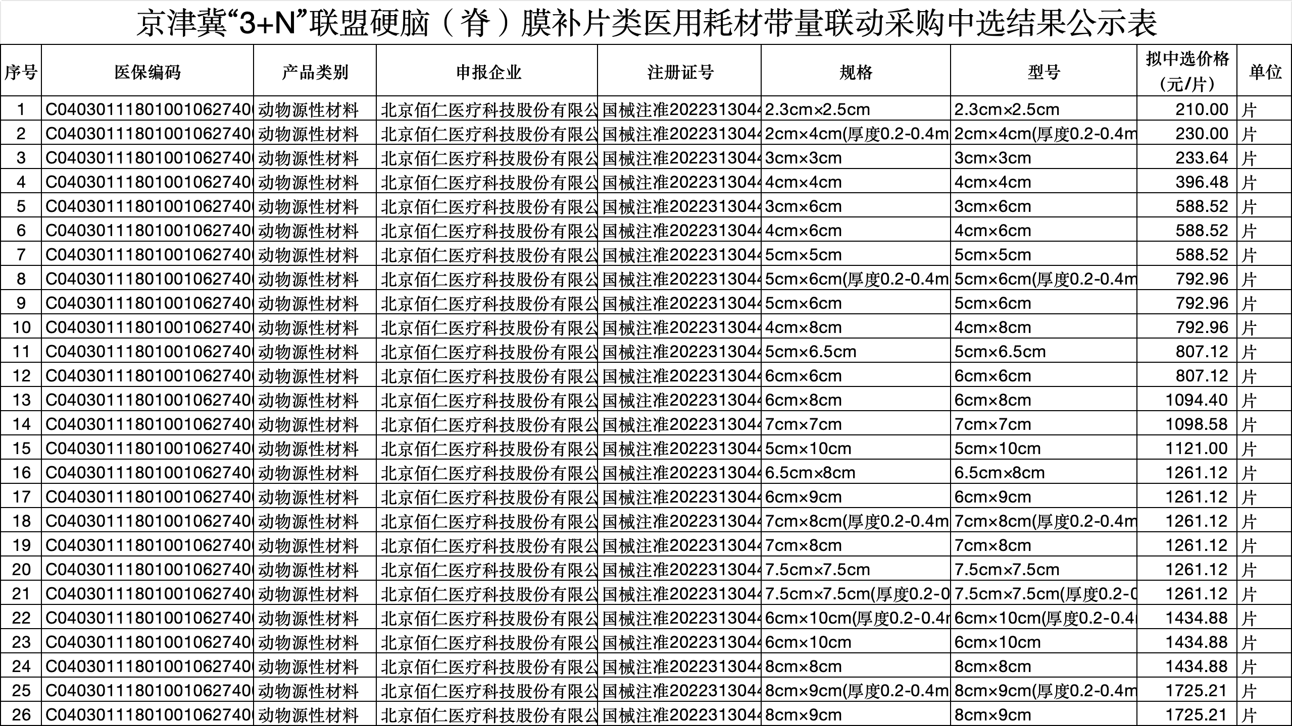 3月18日,天津市醫(yī)藥采購(gòu)中心發(fā)布京津冀“3+N”聯(lián)盟硬腦(脊)膜補(bǔ)片類(lèi)和留置針類(lèi)集采產(chǎn)品供應(yīng)量確認(rèn)工作的通知。