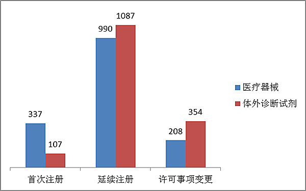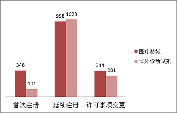 2016年,食品藥品監管總局共受理醫療器械注冊、延續注冊和許可事項變更申請8920項,與2015年相比注冊受理項目減少5.1%。