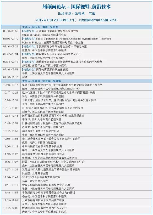 第十二屆中國醫師協會美容與整形醫師大會暨第七屆泛亞地區面部整形與重建外科學會學術大會將于2015年8月28-30日在上海國際會議中心召開,本次會議主要以眼周修復重建新技術、眼瞼美容新進展為主題。