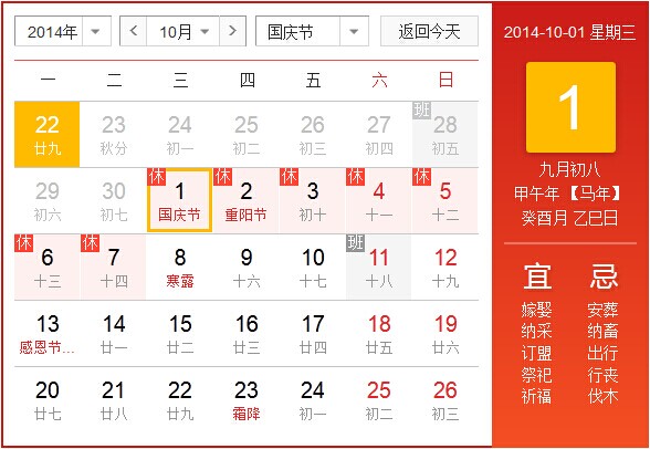 2014年北京華康普美科技有限公司,“國慶節”假期為:10月1日(星期三)至10月7日(星期二)共放假7天,10月8日(星期三)正常上班。