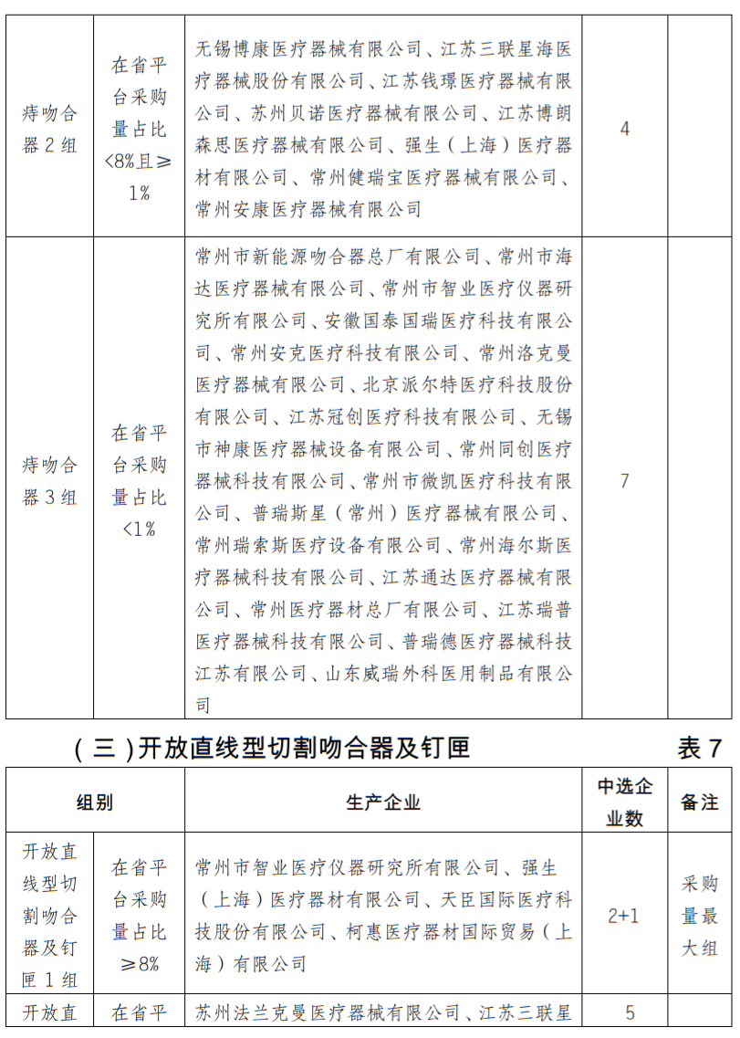 吻合器涉及強生、柯惠、上海逸思、常州市康迪、威海威高富森、重慶邁科唯、重慶邁科唯等械企;