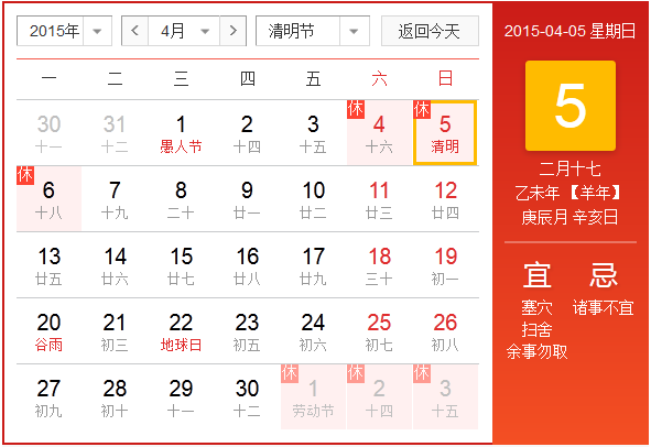 2015年北京華康普美科技有限公司,“清明節(jié)”假期為:4月4日(星期六)至4月6日(星期一)共放假3天,4月7日(星期二)正常上班。