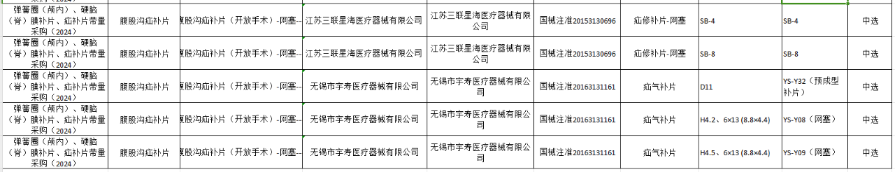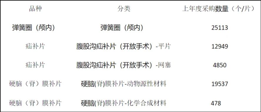 本次續約范圍為河北省組織彈簧圈(顱內)、硬腦(脊)膜補片、疝補片三類醫用耗材集中帶量采購。