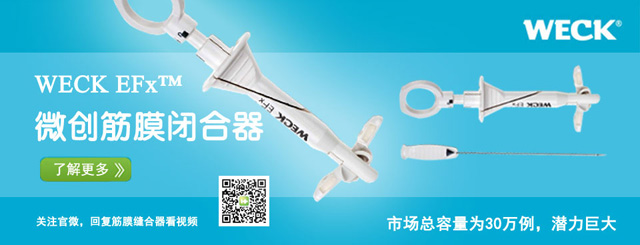 6.Teleflex WECK EFx Endo微創筋膜閉合器-產品旨在通過提供標準化的閉合效果,最大限度地減少與穿刺孔疝相關的并發癥和費用。可靠性高,適用于各種體型的患者,達到1厘米的筋膜收攏效果;“由內而外”,獨特閉合,控制進針深度,提高安全性;最大限度地減少針刺傷害風險。