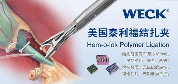 9.美國泰利福威克WECK結扎鎖Hem-o-lok-采用不可吸收的多聚合物材料,無組織反應性,無組織粘連和焦痂;杜絕細菌隱匿,無感染隱患;射線可透,CT/MRI檢查無散射,無偽影。弓形釘腿設計,使關閉力度均勻,無組織切割作用,有效擴大結扎范圍,可容納更多組織。