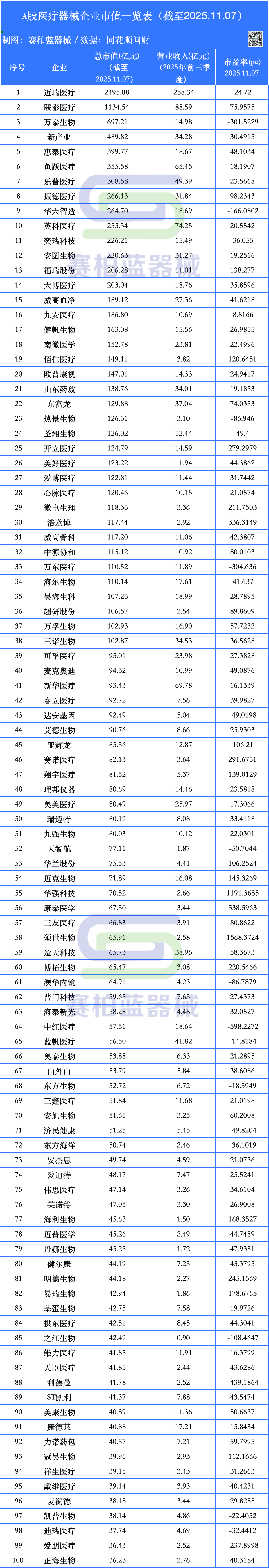 市值作為資本市場最核心的價值標尺,凝結了市場對企業價值的綜合判斷。根據醫療器械企業前三季度業績情況,部分細分行業已迎來拐點,相關企業的市值也在發生變動。
