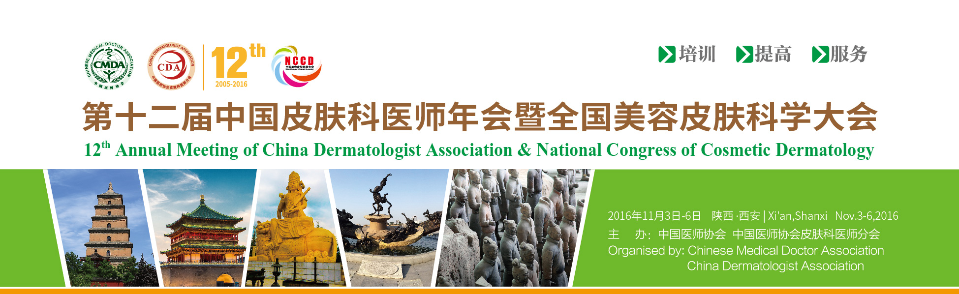 由中國醫師協會皮膚科醫師分會主辦的第十二屆中國皮膚科醫師年會暨全國美容皮膚科學大會將于2016年11月在西安隆重召開。