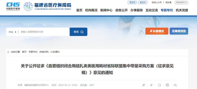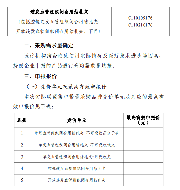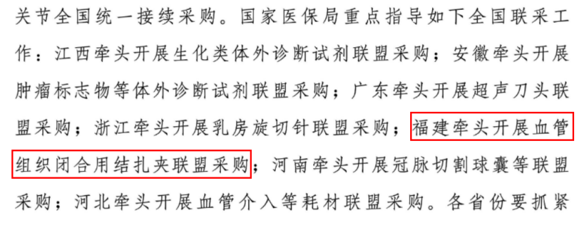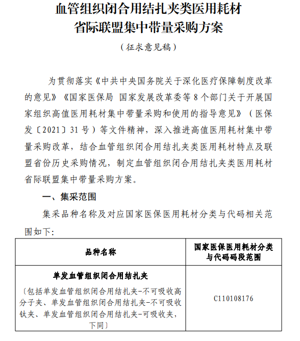 其中,福建牽頭開展血管組織閉合用結扎夾聯盟采購,也是首個發布集采征求意見稿的全國聯采。