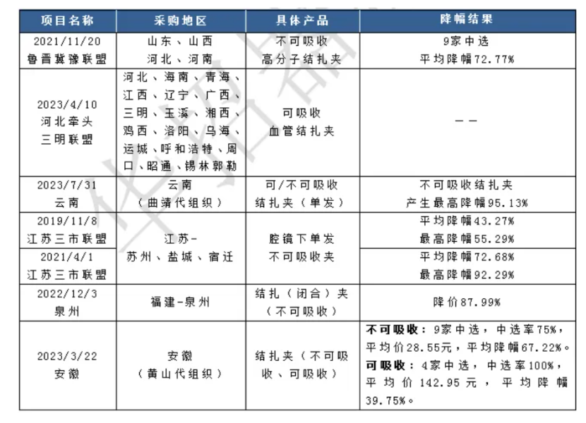 對于快速增長的結扎夾市場,帶量采購此前就已介入。