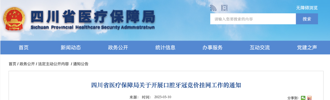 3月10日,四川省醫(yī)保局發(fā)布《關(guān)于開展口腔牙冠競價掛網(wǎng)工作的通知》(以下簡稱《通知》)。