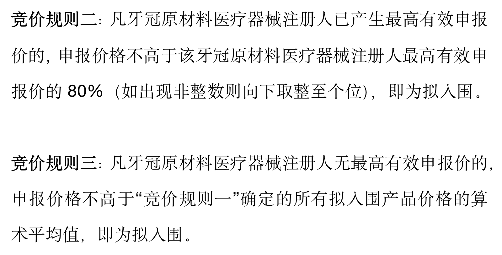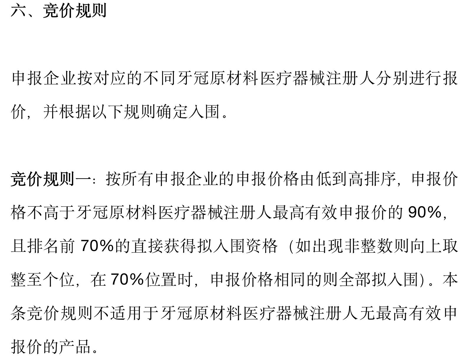 申報企業(yè)按對應(yīng)的不同牙冠原材料醫(yī)療器械注冊人分別進(jìn)行報價,并根據(jù)以下規(guī)則確定入圍。