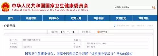 為深入貫徹落實(shí)黨的十九大和《“健康中國(guó)”2030規(guī)劃綱要》精神,持續(xù)提升基層服務(wù)能力,改善服務(wù)質(zhì)量,國(guó)家衛(wèi)生健康委、國(guó)家中醫(yī)藥局決定開(kāi)展“優(yōu)質(zhì)服務(wù)基層行”活動(dòng)。現(xiàn)將有關(guān)事項(xiàng)通知如下: