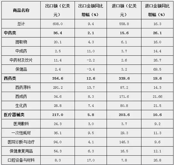 三、醫(yī)藥進(jìn)出口實(shí)現(xiàn)較快增長,國際化步伐加快