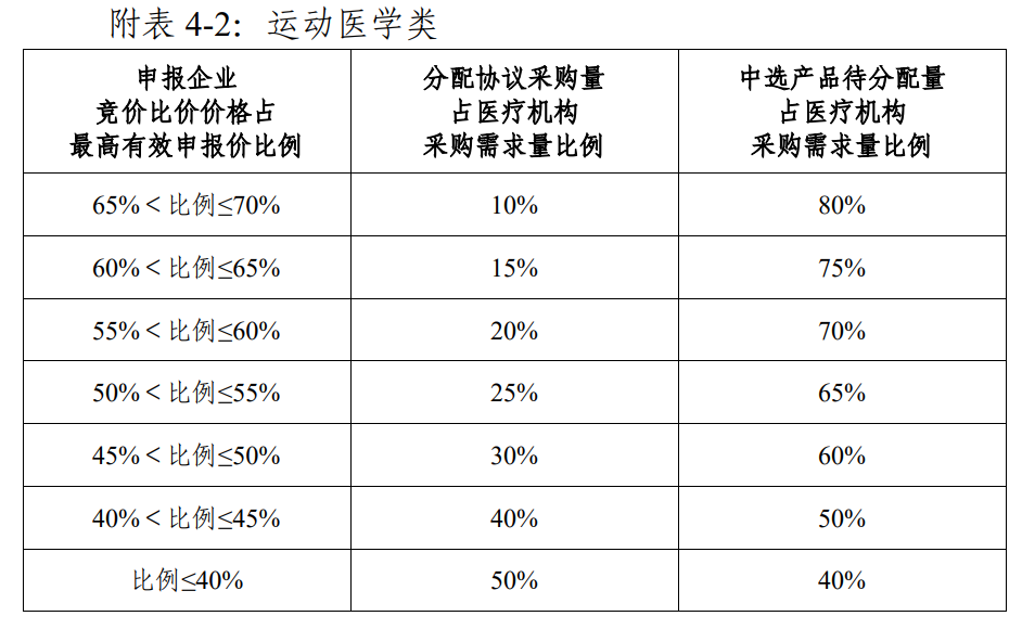 與脊柱國采類似,此次集采擬中選規(guī)則中的規(guī)則二,是行業(yè)俗稱的“躺平復(fù)活”機制。其中,人工晶體降40%、運動醫(yī)學(xué)降60%可獲得擬中選資格(具體折算規(guī)則、適用范圍見文件)。此外,第四批國采還增加了規(guī)則三:對于申報企業(yè)不超過2家的競價單元,人工晶體降20%、運動醫(yī)學(xué)降30%可獲得擬中選資格。