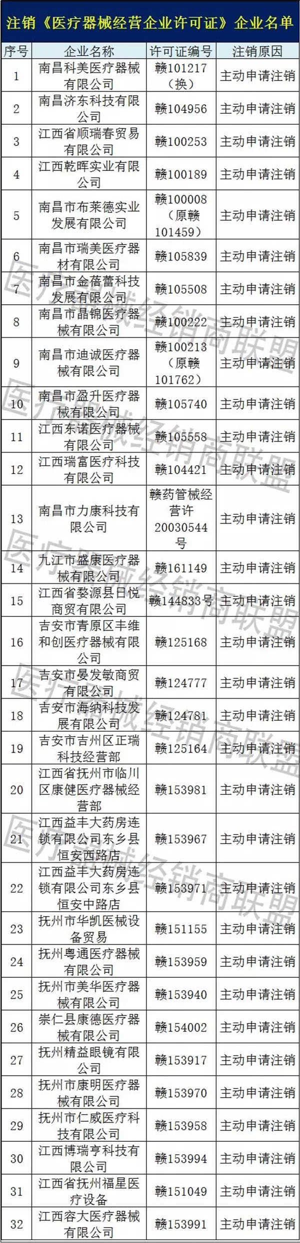 南昌科美醫療器械有限公司等49家企業主動申請注銷;
