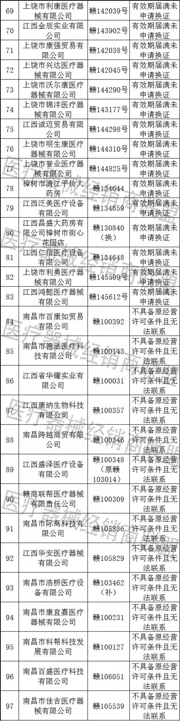 上饒市瑞科醫療器械有限公司等34家企業有效期屆滿未申請換證;