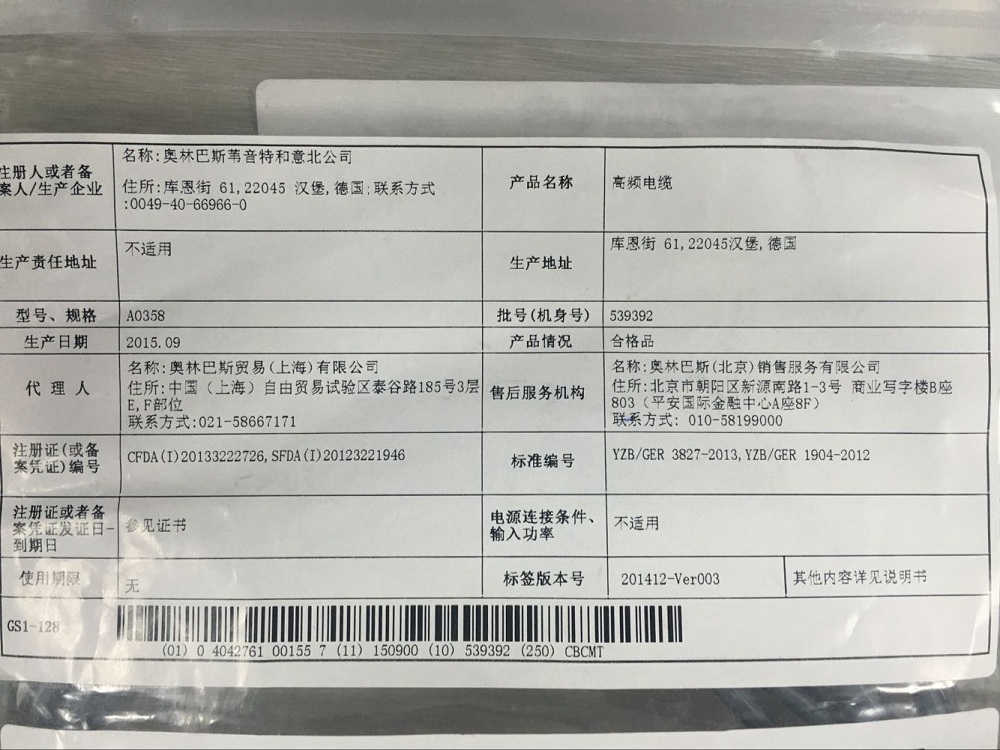 奧林巴斯OLYMPUS腹腔鏡高頻電纜A0358
