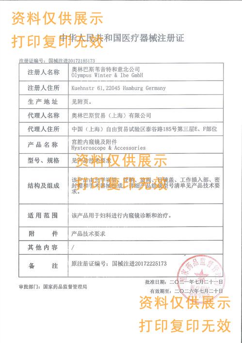 奧林巴斯宮腔檢查鏡,該產品由光學視管、管鞘、目鏡蓋、工作插入部、密封帽和手術器械組成